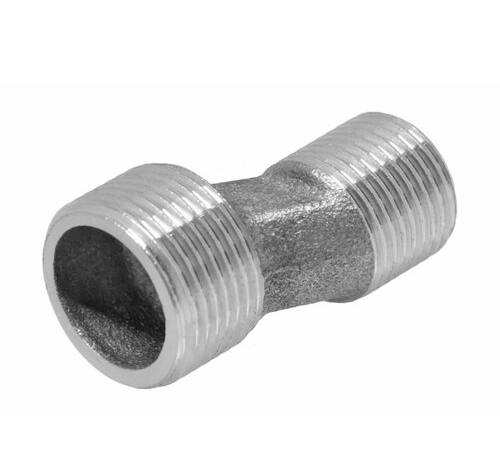 Резьбовые эксцентрики обеспечивают беспроблемное подключение к водопроводу сантехнических смесителей. Применение изделий дает возможность компенсировать неточности при размещении водорозеток либо резьбовых патрубков стального водопровода, скорректировать положение смесителя в пространстве. Материалом фитинга, изготовленного методом горячего объемного штампования, служит высококачественная латунь марки CW617N. Гальванопокрытие соединителей – никелевое. Диаметр резьбы наружная 1/2" х наружная 3/4"