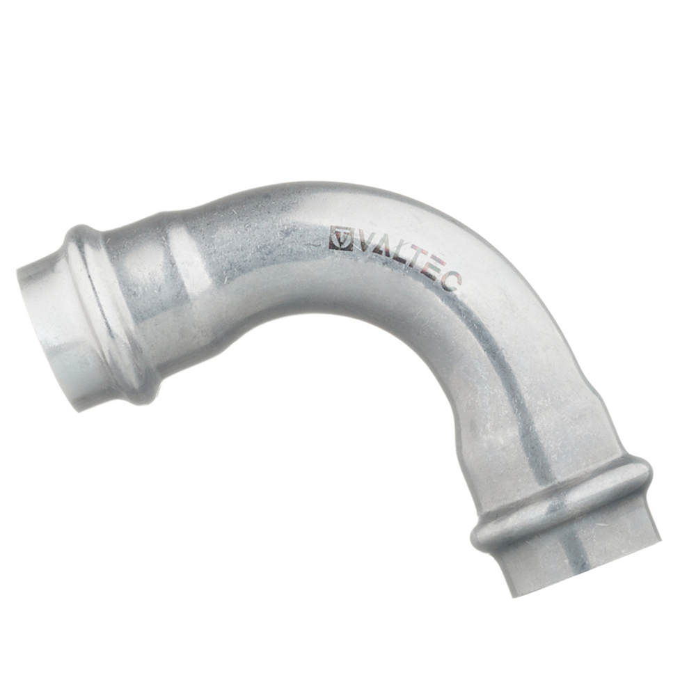 Двухраструбный пресс-угольник из нержавеющей стали обеспечивает соединение под углом 90° тонкостенных стальных труб систем водоснабжения, отопления, иных инженерных и технологических установок с рабочей температурой до 120 °С и давлением до 16 бар. Изделие изготовлено из стали AISI 304. Материал уплотнительных колец – эластомер EPDM. Отдельно можно приобрести уплотнительные кольца из FPM (витон); в этом случае максимальная рабочая температура увеличивается до 140 °С.