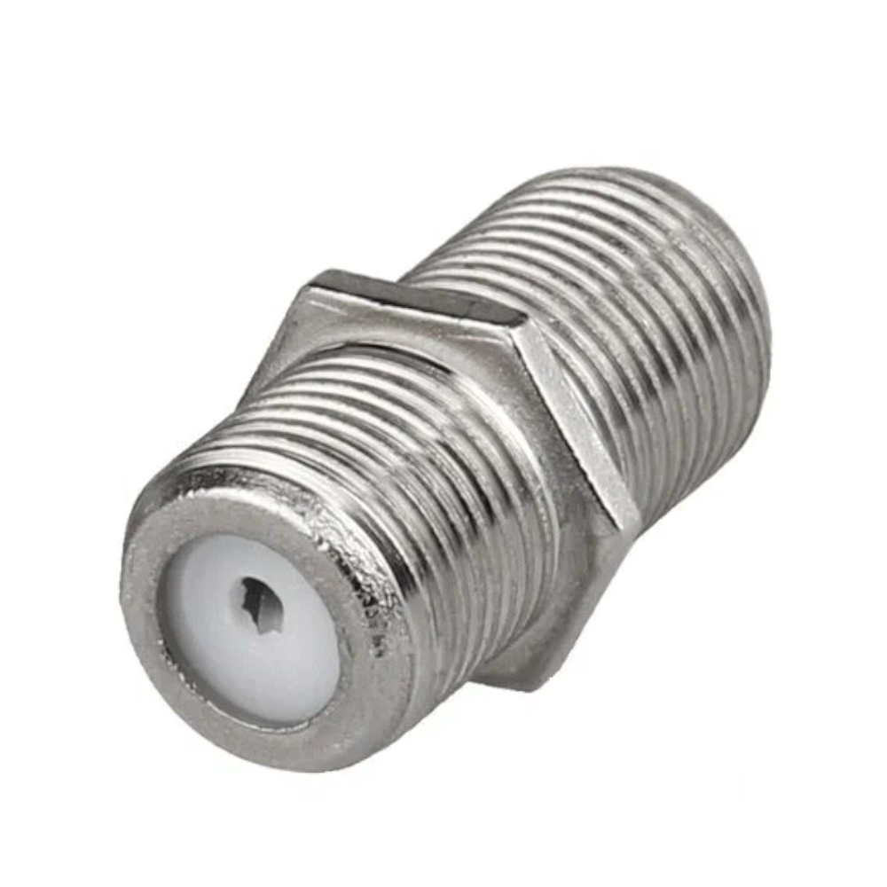 - Переходник используется для соединения двух ТВ кабелей с волновым сопротивлением 50 или 75 Ом, на концах которых расположены штекеры F-разъема.