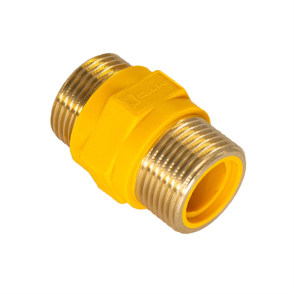 Диэлектрическая вставка (муфта) является фитингом-отсекателем, который защищает газовые приборы от блуждающих токов. Такие токи могут образовываться из-за аварий на ЛЭП или в связи с перебоями в электросети. Если газовое оборудование подключено к сети, (например, газовая плита с электроподжигом), блуждающие токи могут привести к поломке прибора или даже стать причиной необратимых последствий. Диэлектрическая вставка изолирует накопившийся электрический потенциал и защищает внутренние электроцепи газовых приборов и счетчиков от поломок. Диэлектрическая вставка не требует специального обслуживания и обладает длительным сроком службы. Еще одно достоинство муфты — простой монтаж благодаря резьбовым соединениям соответствующих диаметров. Сделано в России.