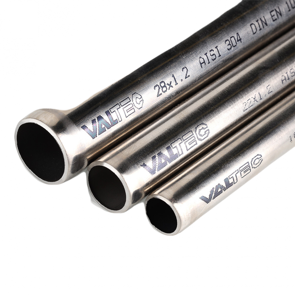 Труба предназначена для использования в составе инженерных и технологических трубопроводов, транспортирующих жидкости и газы, неагрессивные по отношению к легированной стали AISI 304. Свойства этого сплава позволяют выпускать и широко применять трубы с уменьшенной толщиной стенки (в диапазоне диаметров внутренней разводки – 0,8–1,2 мм), осуществляя их монтаж с помощью пресс-фитингов. Труба из нержавеющей стали VALTEC изготавливается в соответствие со стандартом DIN EN 10312 на современном высокотехнологичном предприятии. Форма поставки – отрезки длиной 4 м.
